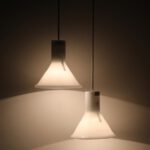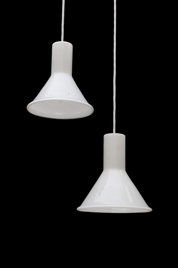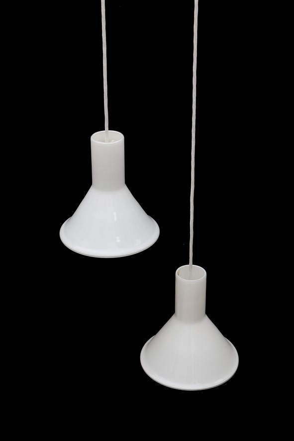 Set of 2 Holmegaard / Michael Bang “Mini P&T” pendant lamps / handmade glass / white