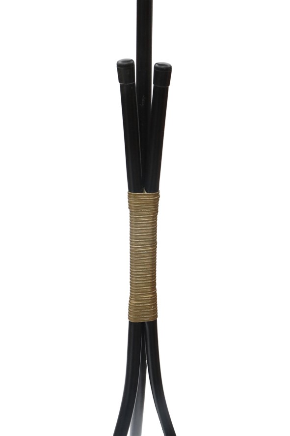 Big tripod floor lamp / black / brass / jute / mid century / 1950s-1960s