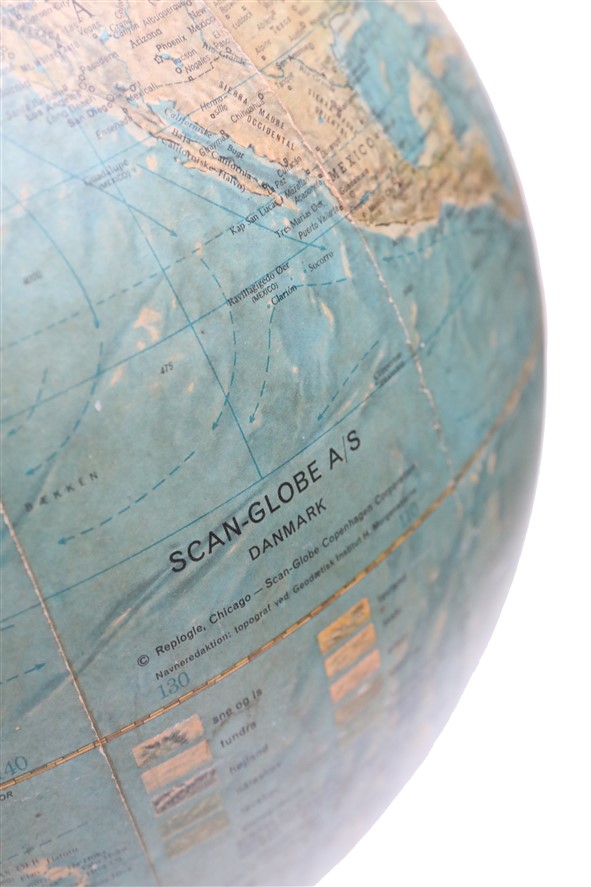 Scan-Globe A/S, Copenhagen, Denmark, with built-in light. 1960s-1970s. The card still says “Ceylon” instead of “Sri Lanka”, so the globe must have been made before 1972. Brass and solid teak base. Approx. 41x32x30cm (H,D,W). Used condition. Some signs of use due to age. Vintage patina. See photos. These are part of the description. These are the original pictures of the items for sale. That said, colors may vary slightly as they display differently on different devices / screens.