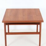 1960s-1970s Niels Bach, Denmark, teak (veneered table tops, main top with solid mask, frame: solid teak). Very high quality craftmanship. Approx. 69x69x55cm (width/depth/height). Main top restored, satin finish. Used item. According to age, only a few signs of use. A light stain on the main board (see photos 9+10).The photos are part of the description. These are the original pictures of the items for sale. Nevertheless, the colors may vary slightly as they are displayed differently on different devices / screens.