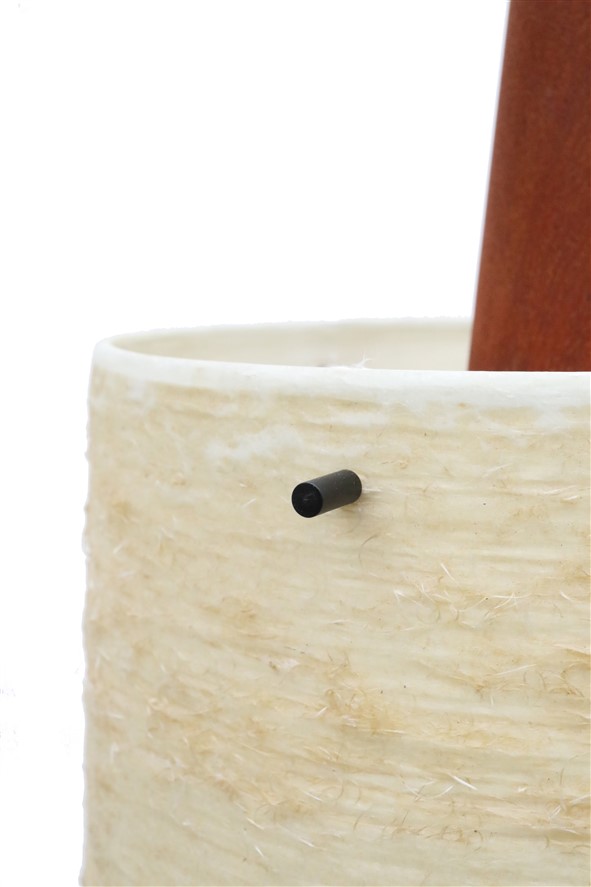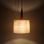1950s-1960s Dame & Co, Germany (West). Fiberglass lampshade, metal, solid teak. Total size: approx. 24 x 36cm (diameter/height). Supplied with high quality textile cable (about 2.30m), light bulb and ceiling cup. Used item. According to age some signs of use. See photos, which are part of the description. These are the original pictures of the items for sale. Anyway: Colours may vary slightly as they are displayed differently on different devices / screens.