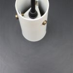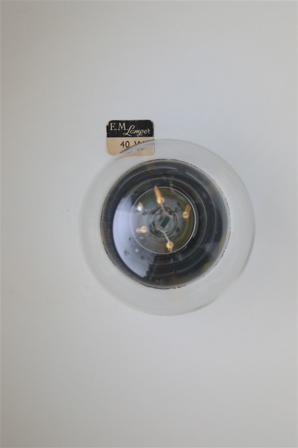 1950s-1960s E.M. Lamper, Denmark. Steel (charcoal/white), with brass pins. Approx. 31cm diameter. Rare piece. Never seen before. Supplied with high quality textile cable (about 2.40m), light bulb and ceiling cup. Used item. According to age only slight signs of use. See photos, which are part of the description. These are the original pictures of the items for sale. Anyway: Colours may vary slightly as they are displayed differently on different devices / screens.