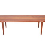 1960s-1970s, Mikael Laursen, design: John Boné, Denmark, exceptional quality, solid teak coffee table. Used, few signs of use due to age. Refinished, satin matte surfaces. Approx. 167 x 57 x 46cm (width/depth/height).