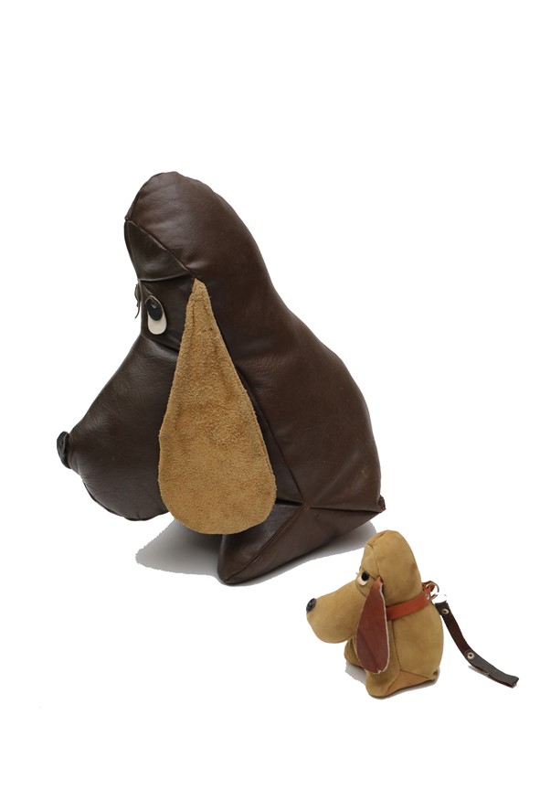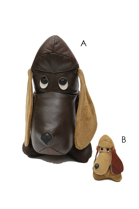 (big version still available) Sallingboe “Mugge” leather / basset hound / dog / mid century / soft toy