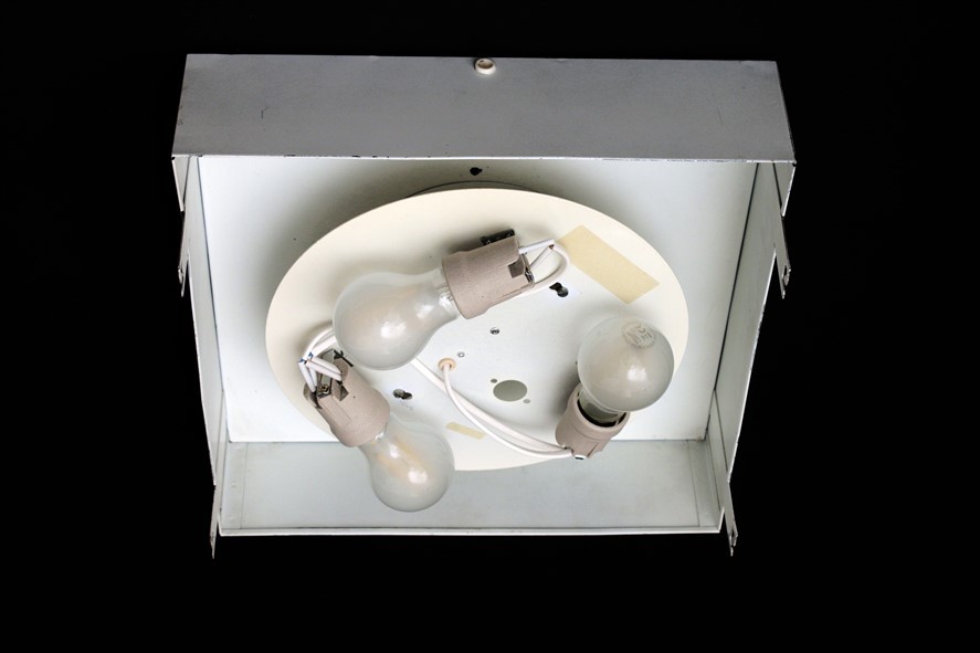 Rare. Especially in the XL version: 1960s-1970s Nordisk Solar Compagni, Denmark “Max” ceiling lamp. Design: Max Brüel, Gehrdt Bornebusch, Jørgen Selchau. Aluminum/steel. Approx. 57 x 57 x 22cm. With 3 ceramic sockets. Supplied with bulbs. Used item. According to age only slight signs of use. See photos, which are part of the description. These are the original pictures of the items for sale. Anyway: Colours may vary slightly as they are displayed differently on different devices / screens. More of these lights can be organized if needed. Shipping is more expensive than standard size, “DHL Sperrgut”.