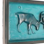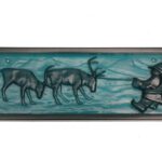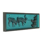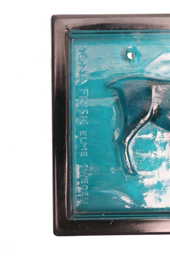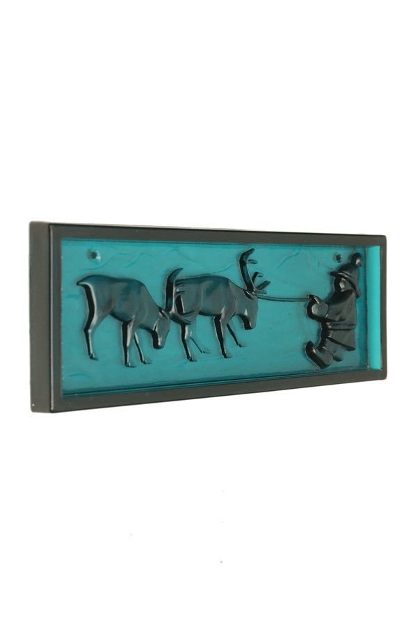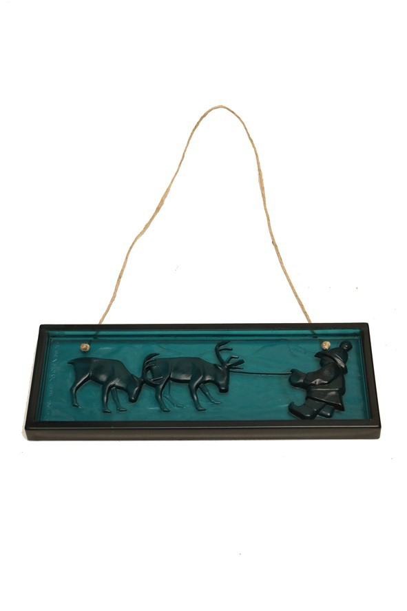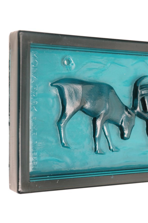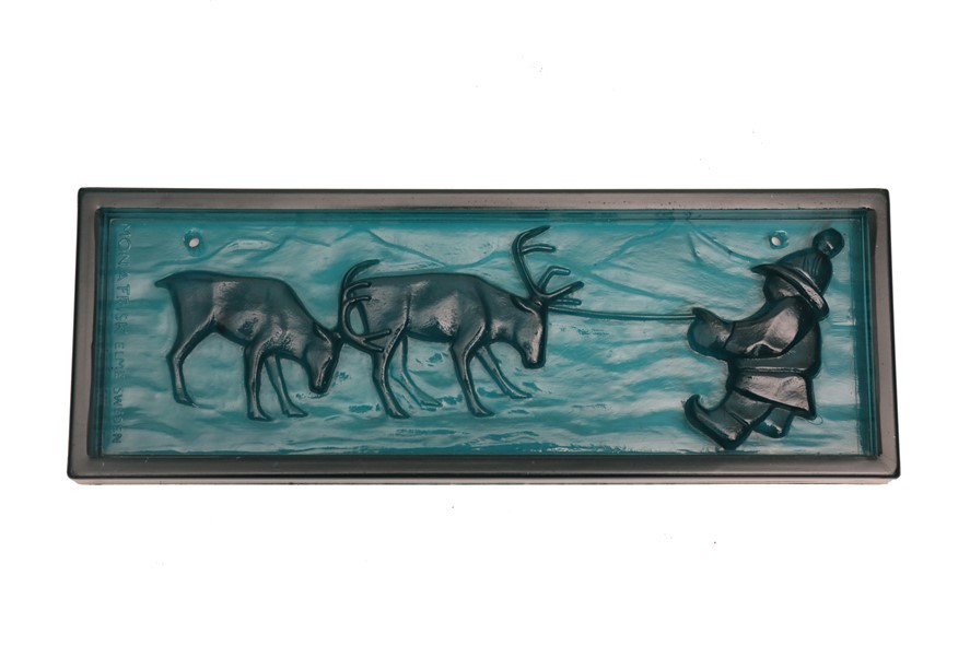 Elme, Schweden / Mona Frisk „Sami-Hirte mit Rentier“ Glas-Sonnenfänger / Wandtafel / mid century