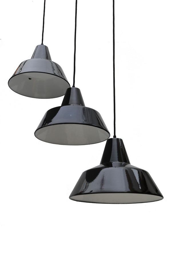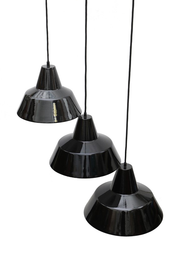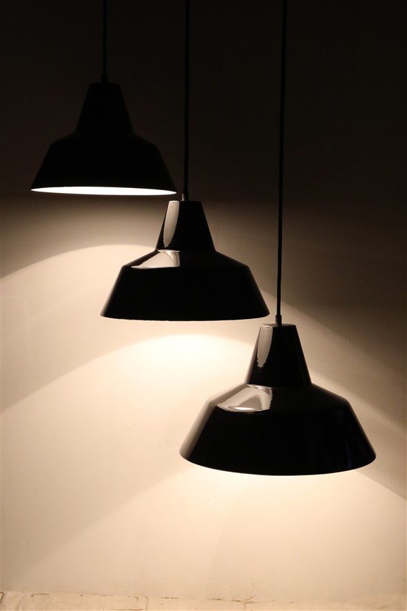 Schwarze Louis Poulsen „Arbejdspendel“ Emaille-Werkstattleuchten / Hängeleuchten / lampen / mid century
